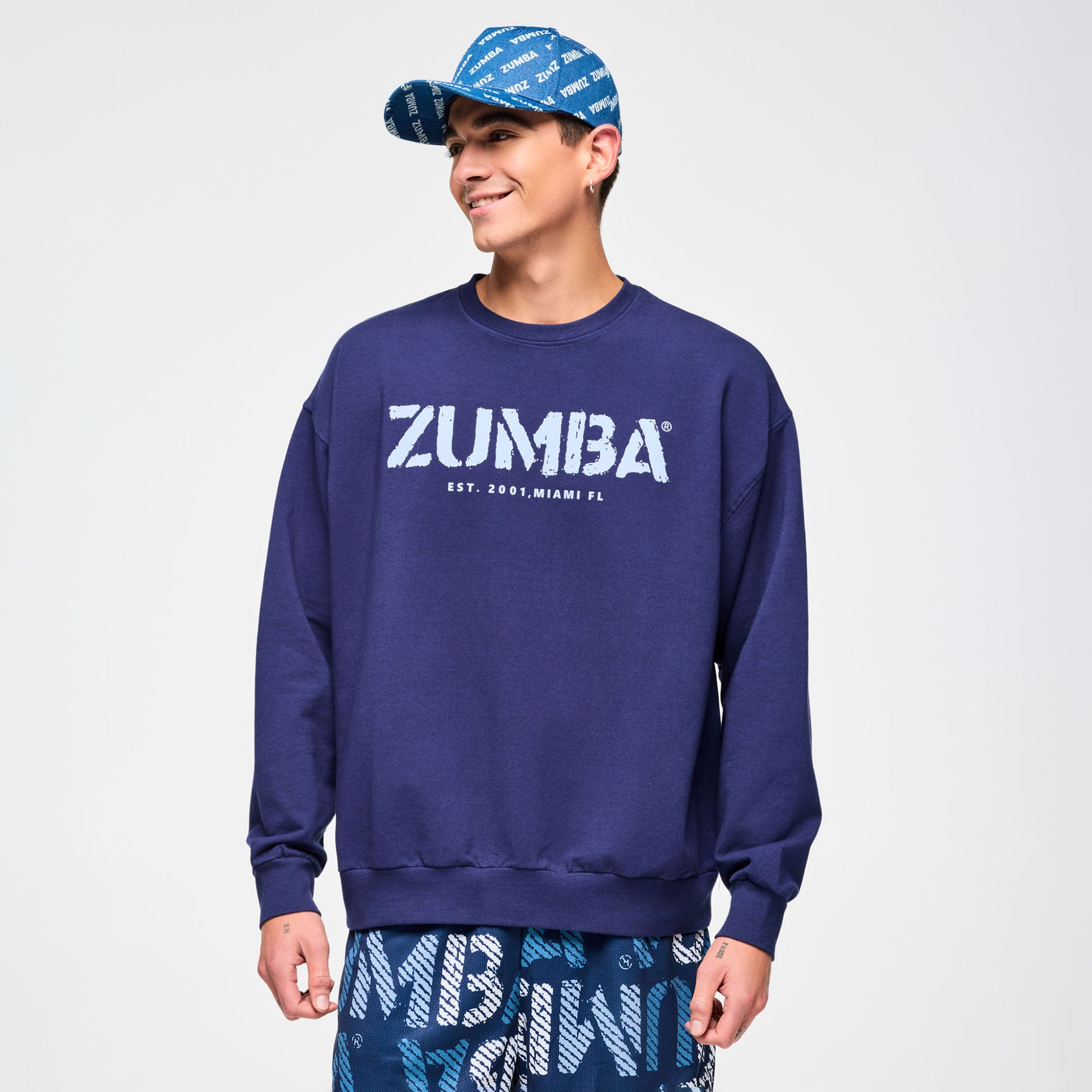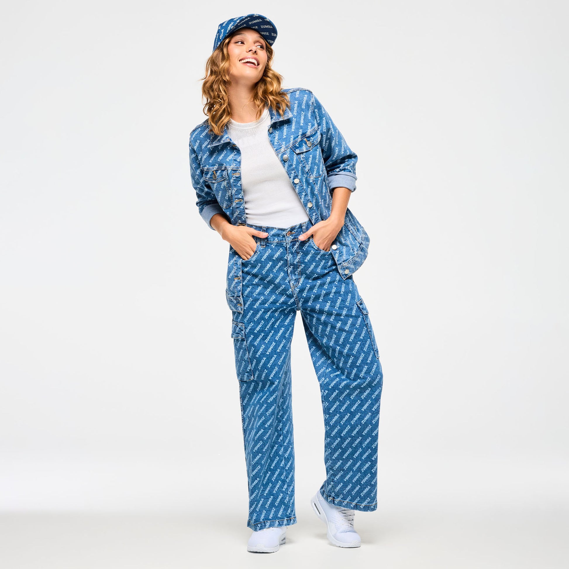 - Washed denim hat with bleached Zumba all over print