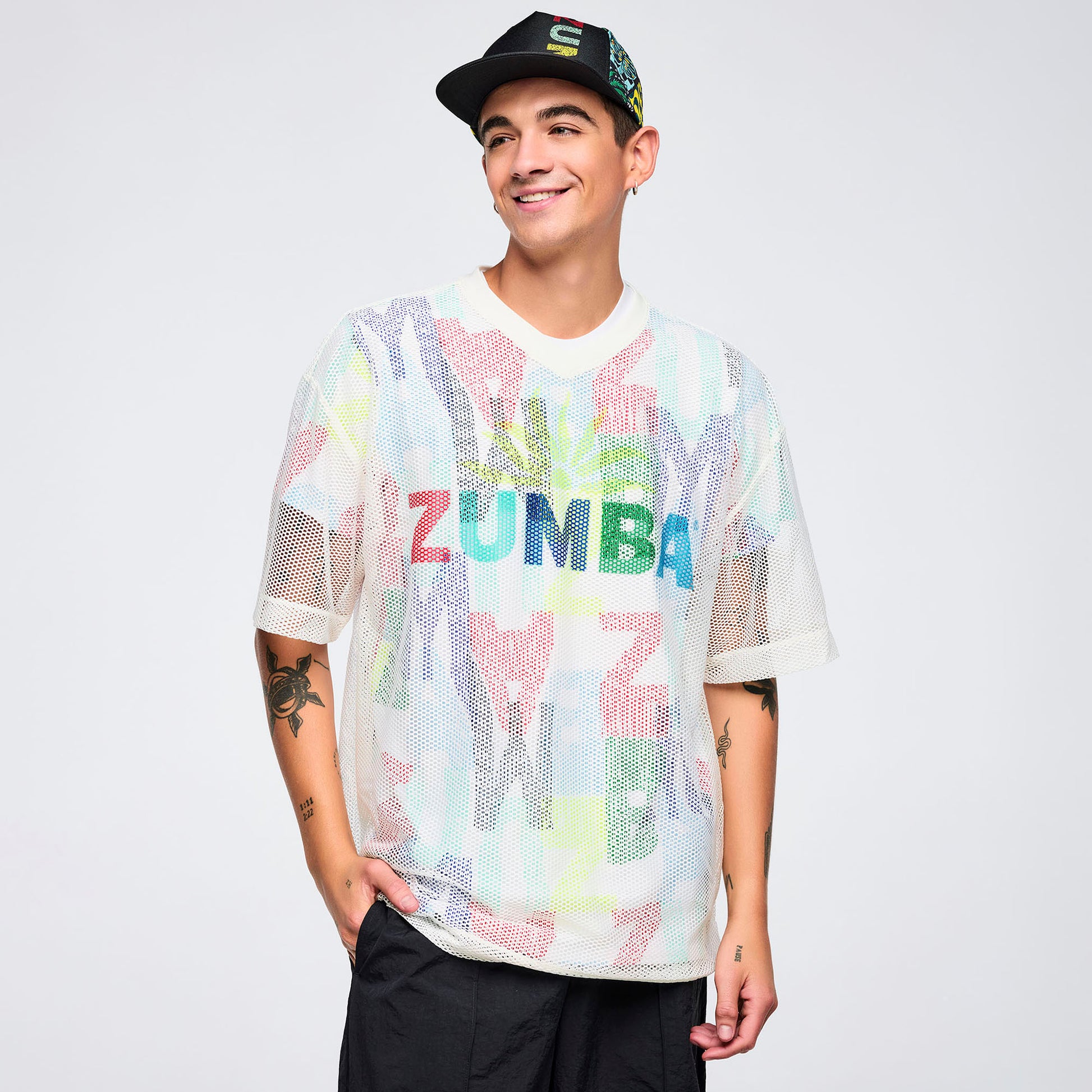 - 5-Panel Hat with embossed multicolor Zumba on the front crown and brim