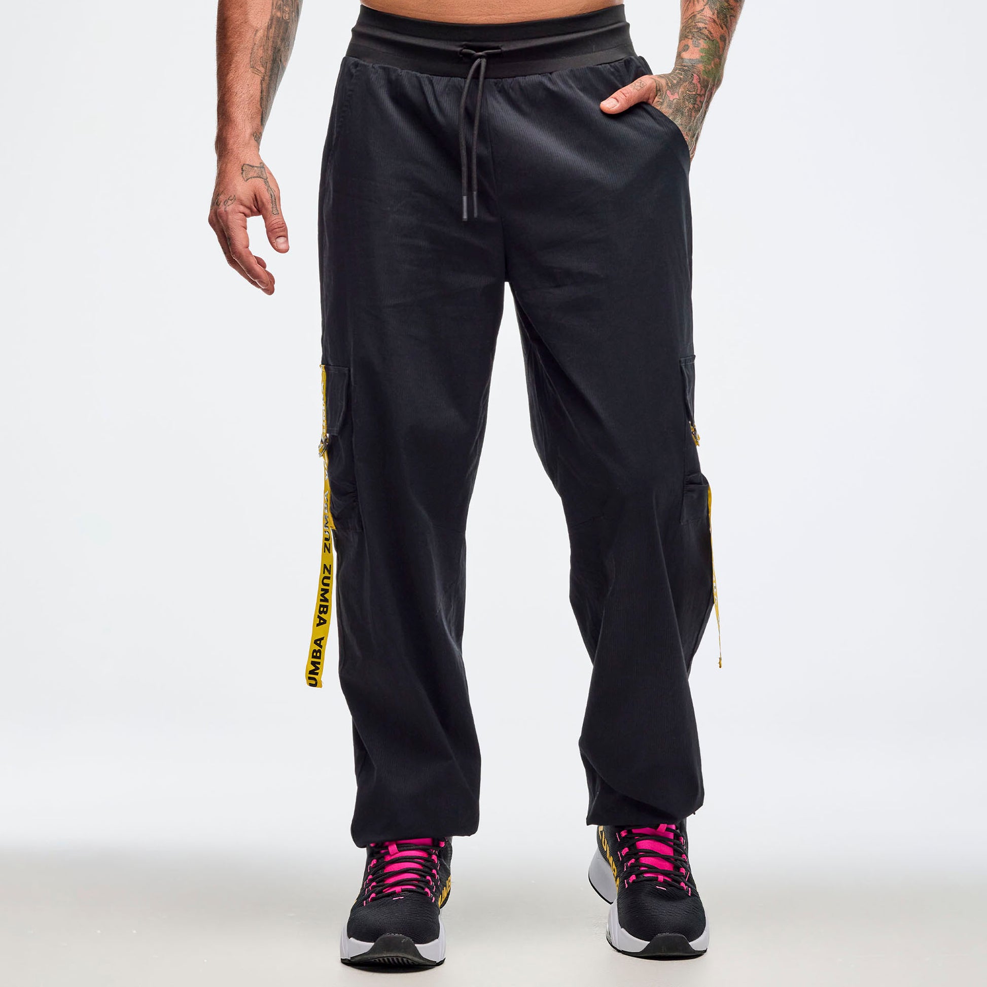 - Branded yellow tassels on side and rear cargo pockets