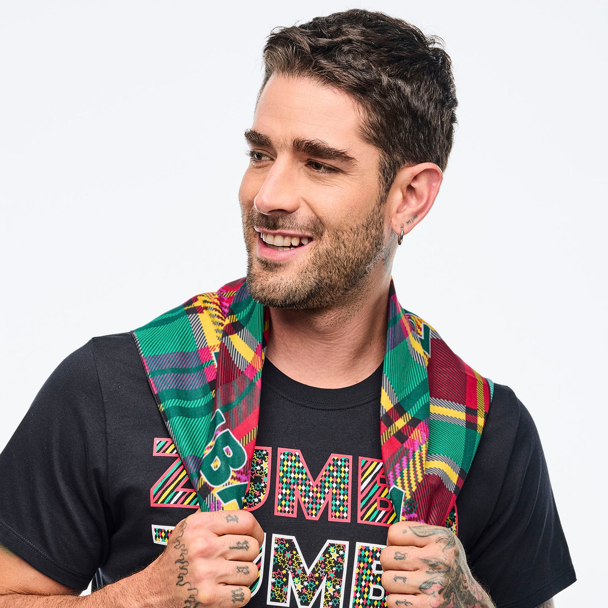 - Bandana #2 has a multicolor plaid with a Zumba on each corner